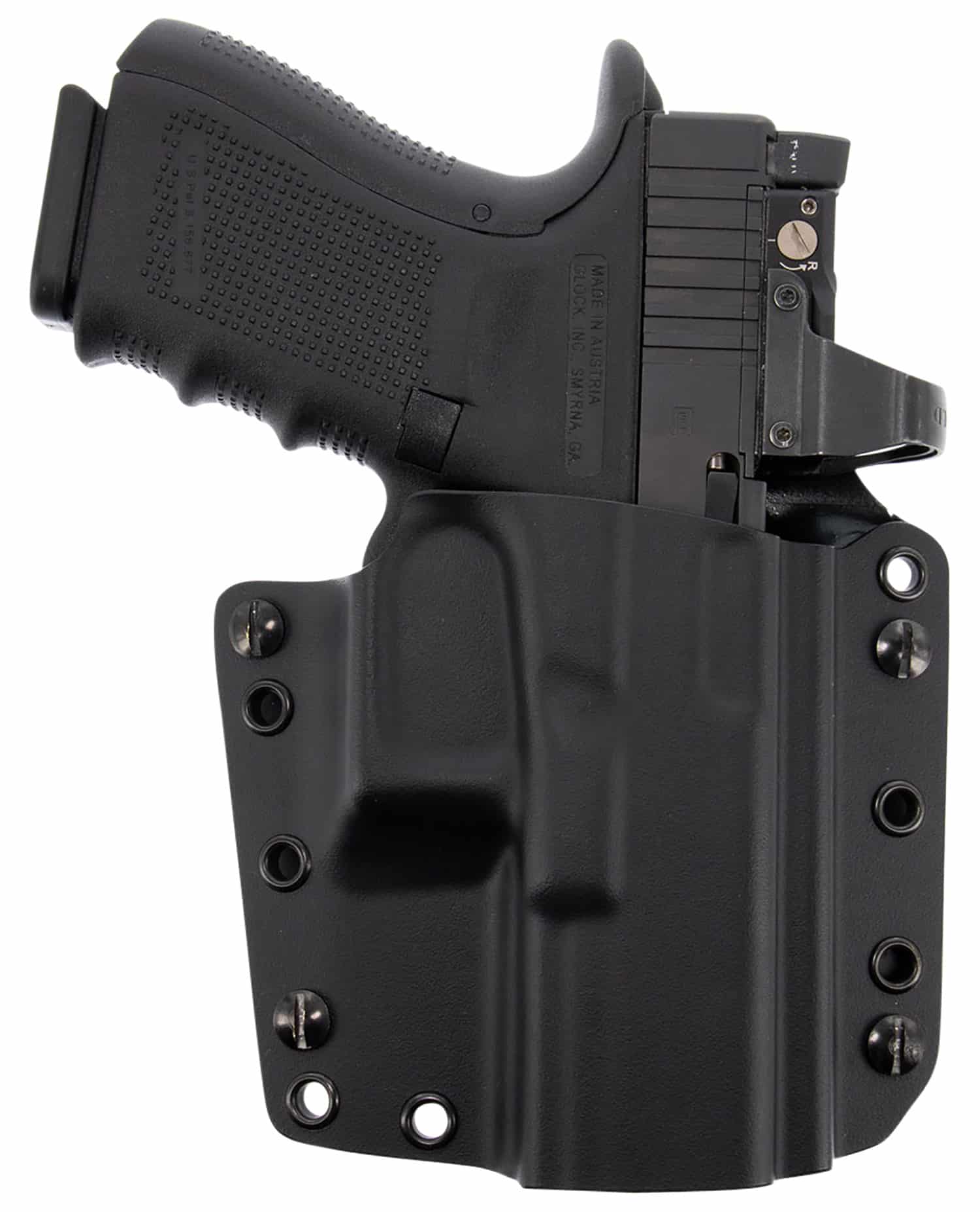 The Corvus quickly and easily converts from a belt holster to an inside-the-waistband design. With an open top for fast draw, adjustment for ride height and cant, virtually maintenance-free construction and comfortable forward molding, the highly versatile Corvus is a superior holster choice for defensive carry. The Corvus comes complete with belt slots in both 1.50″ and 1.75″ widths, as well as straps for conversion to inside the waistband carry. The modern layout is designed to accommodate most carry-style optical sights, while the deep sight rail accommodates most suppressor-height sights. Fits S& M&P 2.0 4″ 9/40, S&W M&P 2.0 4″ Optic Ready, S&W M&P 2.0 4″ w/wo red dot, S&W M&P 2.0 4.25″ 9/40, S&W M&P 2.0 4.25″ 9/40 w/wo red dot, S&W M&P 4.25″ 9/40, S&W M&P 4.25″ 9/40 w/wo red dot.
