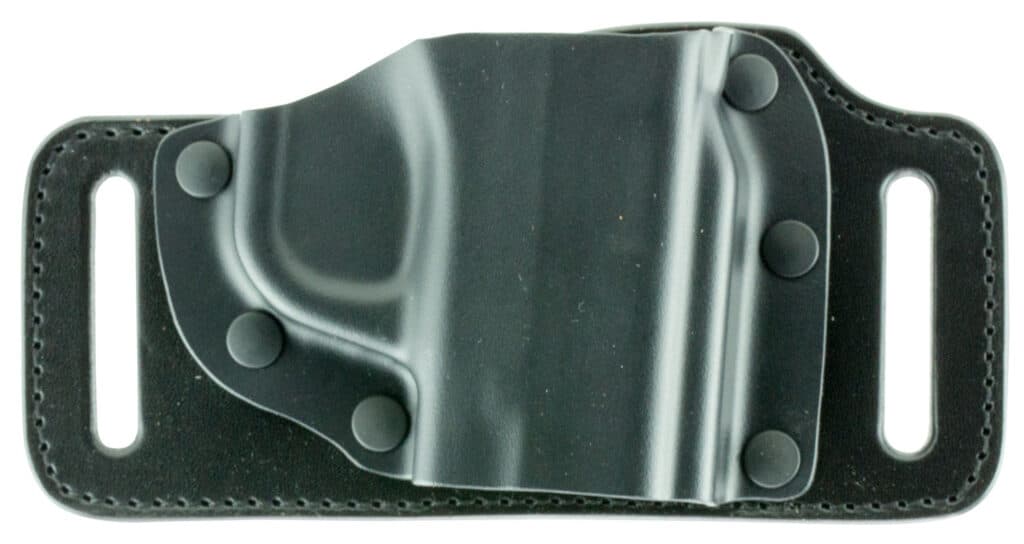Galco’s TacSlide mates a Kydex holster pocket to a slotted leather backplate for a belt holster that is fast, concealable and very economical. An open top and near-neutral cant make the draw fast and simple, while the open bottom accommodates multiple barrel lengths. The forward-molded design contours to the hip and the belt slots pull the handgun into the body for concealment. Fits belt widths up to 1.75″. Fits- Honor Defense Honor Guard; S&W M&P Shield 9/40, 2.0 9/40, 9/40 w/loaded chamber indicator.