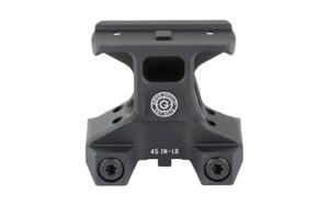 Lerna mount is designed for end-users and provides a 2.91-inch optic centerline for quicker target identification, even with gear or equipment obstructions such as ear protection, communication headsets, gas masks/CBRN, and night vision systems. A higher optic position allows for a more athletic stance and a heads-up posture, helping users keep a vertical spine, which is beneficial for wearing body armor or presenting plates to a threat. This heads-up approach enables faster response times and better situational awareness.