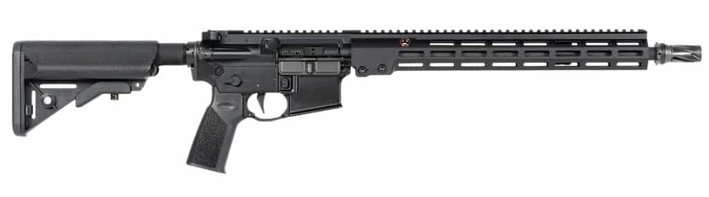 The Super Duty MOD1 Heavy Barrel (HBAR), takes the Super Duty platform to the next level, with a heavy profile barrel that can handle sustained rates of fire while maintaining accuracy and reliability. Featuring an the in-house produced Cold Hammer Forged, chrome-lined Heavy barrel; Nanoweapon coated Reliability Enhanced Bolt Carrier Group; gas system, including the bomb-proofed Super Gas Block, fine-tuned gas port sizing and Super 42 braided buffer spring; Nanoweapon coated HUXWRX Flash Hider-QD muzzle device; SSA-E X two-stage trigger Lightning Bow shape; ambidextrous configurable safety; Airborne Charging Handle; checkered magazine release and Maritime bolt catch; MK16 rail; B5 SOPMOD stock; A17 grip and Geissele Quick Disconnect (QD) Sling Mount Endplate and stainless steel QD inserts on the MK16 rail.
