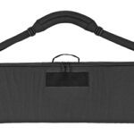 The Grey Ghost Gear rifle case comes with solid construction, endless configurations, and is a looker to boot. There are 2 attachment points on either end of the bag for attaching the carrying strap that is included. The front of the bag features a 8X3 inch loop field to attach patches. The inside if the lid has two zippered mesh pockets to store loose items, cleaning kit, mags, ECT. Inside of the body of the bag is covered in loop. this allows the three provided attachment panels to be used in an infinite number of placements to hold any 38 inch or shorter rifle in place or to store a longer rifle in 2 pieces. There are two additional flat tie downs to secure a smaller item in the bag, such as a hand gun or spotting scope.