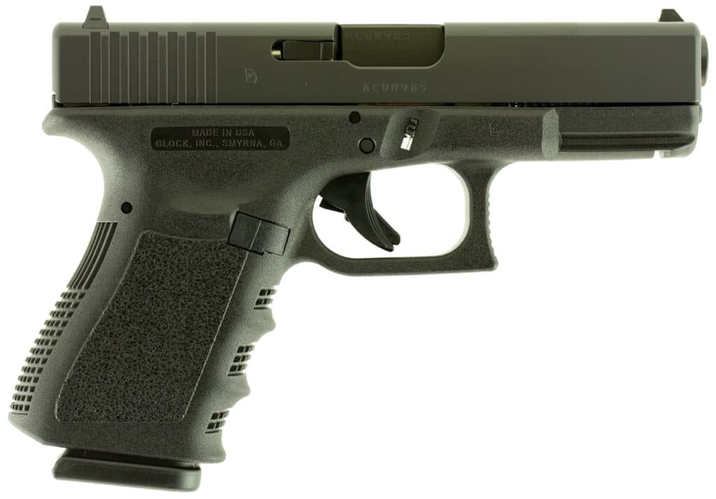 Glock UI1950203 G19 Gen3 Compact 9mm Luger 15+1 4.02″ Black Steel Barrel, Matte Black Serrated Slide, Black Polymer Frame w/Accessory Rail, Black Finger Grooved Polymer Grip, USA Made
