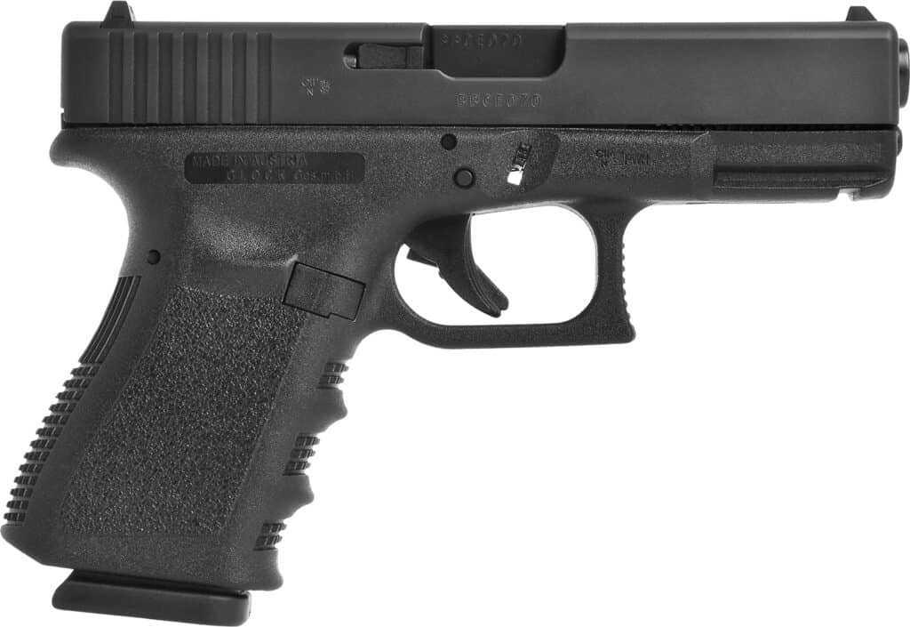 The Glock 23 combines compact dimensions for both open and concealed carry. Featuring Glock’s Safe Action system; polymer frame with hardened steel guides; slide stop lever and the magazine catch are easily operated with the shooting hand; advanced surface treatment- reduces wear and tear and it makes it corrosion resistant; mechanically locked and cold-hammer forged barrel; the extractor serves as a loaded chamber indicator to comply with the laws of certain states and its position may visually and physically indicate whether there is a cartridge in the chamber of the pistol. The Gen5 model features nDLC surface finish, frame texture, reversible magazine catch, ambidextrous slide stop lever and the GLOCK Modular Backstrap System. Includes 3 magazines, mag loader, cleaning set, pistol case and gun lock.