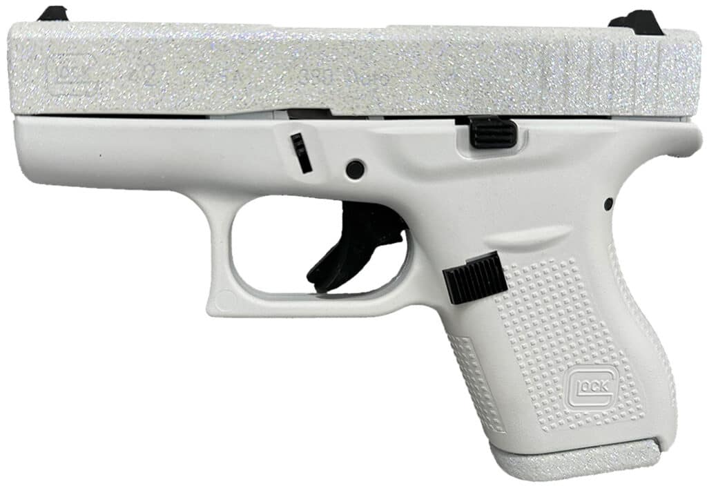 Glock UI4250204NFRST G42 Gen3 Sports South Exclusive 380 ACP 6+1 3.25″ Black Steel Barrel, Frost Glitter Cerakote Serrated Steel Slide, Frost Cerakote Polymer Frame, Textured Polymer Grip, USA Made
