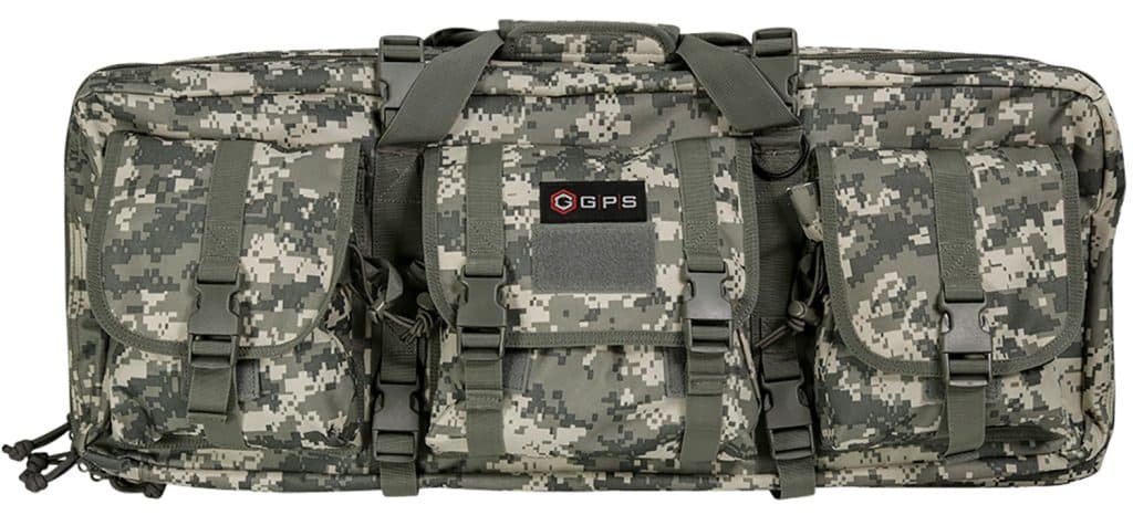 GPS Bags DRC28ACU Double Rifle Case A-TACS AU 600D Polyester w/ 2 Padded Pistol Sleeves MOLLE Webbing & Lockable Zippers