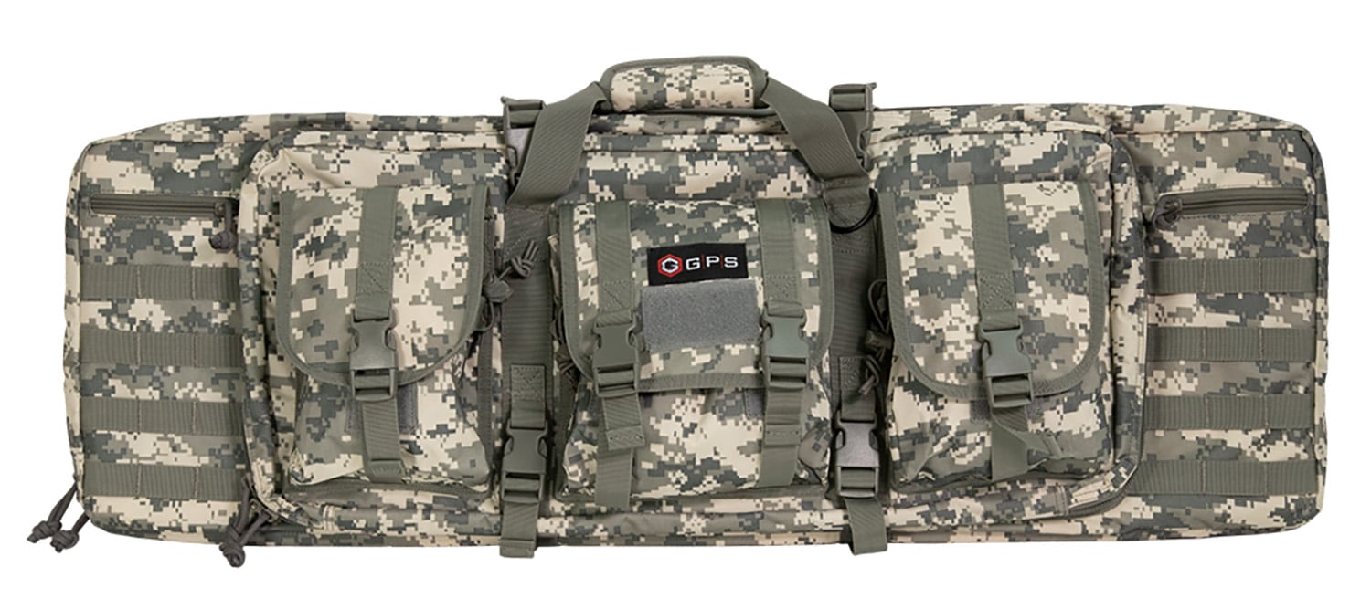 GPS Bags DRC36ACU Double Rifle Case 36″ A-TACS AU 600D Polyester w/ 2 Padded Pistol Sleeves MOLLE Webbing & Lockable Zippers