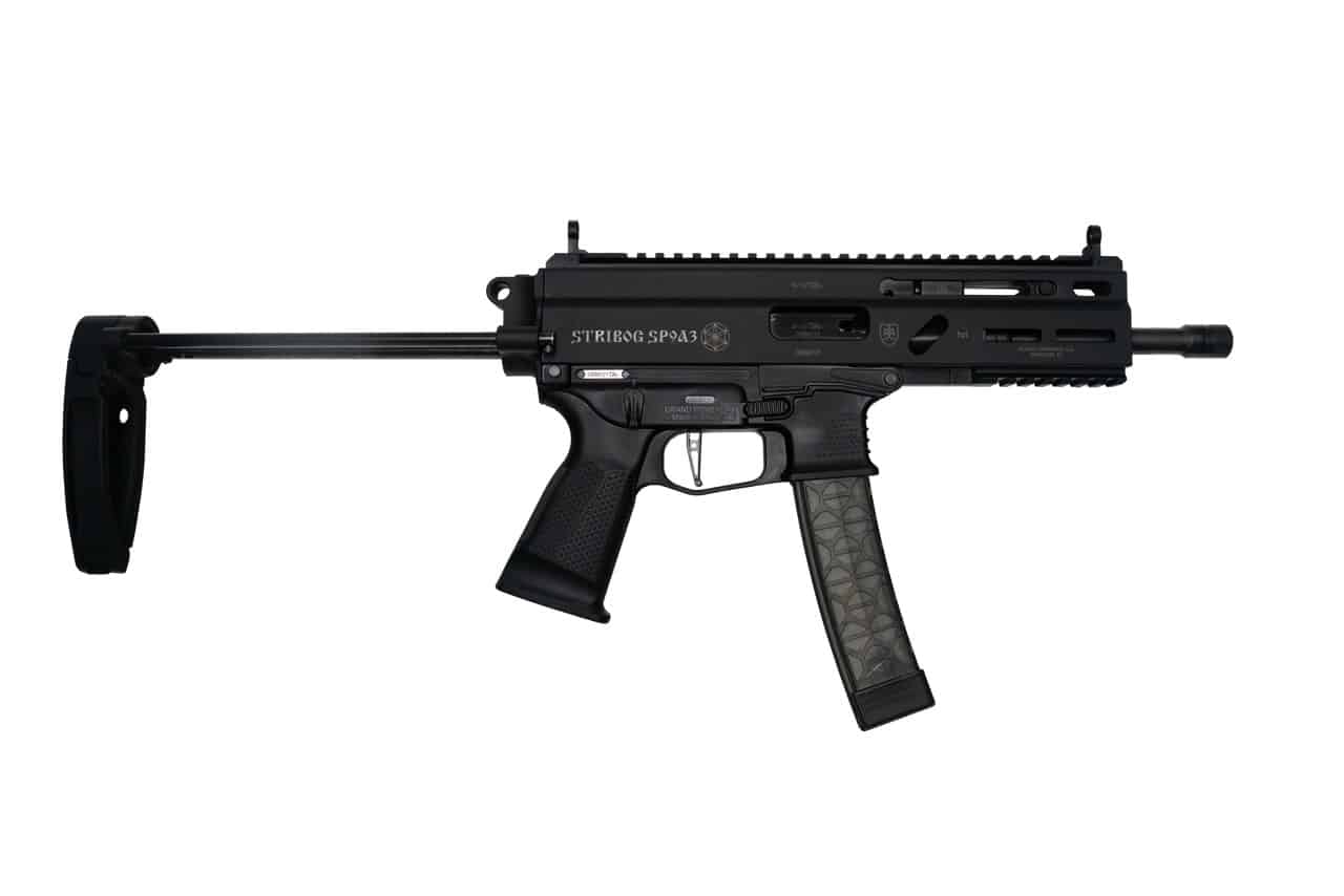 Grand Power Stribog SP9A3 Pistol – Black | 9mm | 8″ Threaded Barrel | 30rd | PDW Brace w/ Tailhook