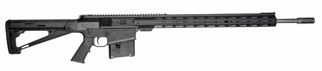 Barrel: 24 superior quality stainless steel (416R) with 5R rifling, Muzzle Brake: 5/8 x 24 stainless steel (416R)Lower: Aluminum billet (7075)Upper: Aluminum billet Handguard: 20″ Aluminum, M-Lok, upper picatinny rail, Gas Block: .750, 4150 Steel, Black Oxide Coated, Gas System: Rifle, Stock: Hogue fixed rifle stock, black, Magazine: GLFA custom aluminum, 5 round, black, Grip: Standard, BCG: Custom design, Charging Handle: Custom designAR-10 Compatible parts: Lower parts kits, trigger, safety