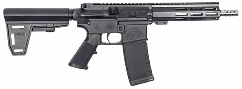 Great Lakes tactical pistol features an M-LOK handguard; Picatinny rail; aluminum billet upper and lower receiver; threaded barrel; Cerakote finish; polymer grip and trigger. Includes magazine.