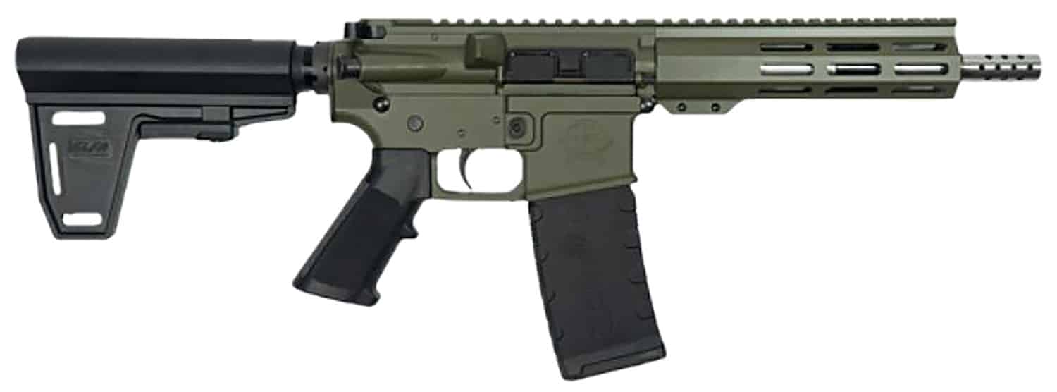 Great Lakes tactical pistol features an M-LOK handguard; Picatinny rail; aluminum billet upper and lower receiver; threaded barrel; Cerakote finish; polymer grip and trigger. Includes magazine.