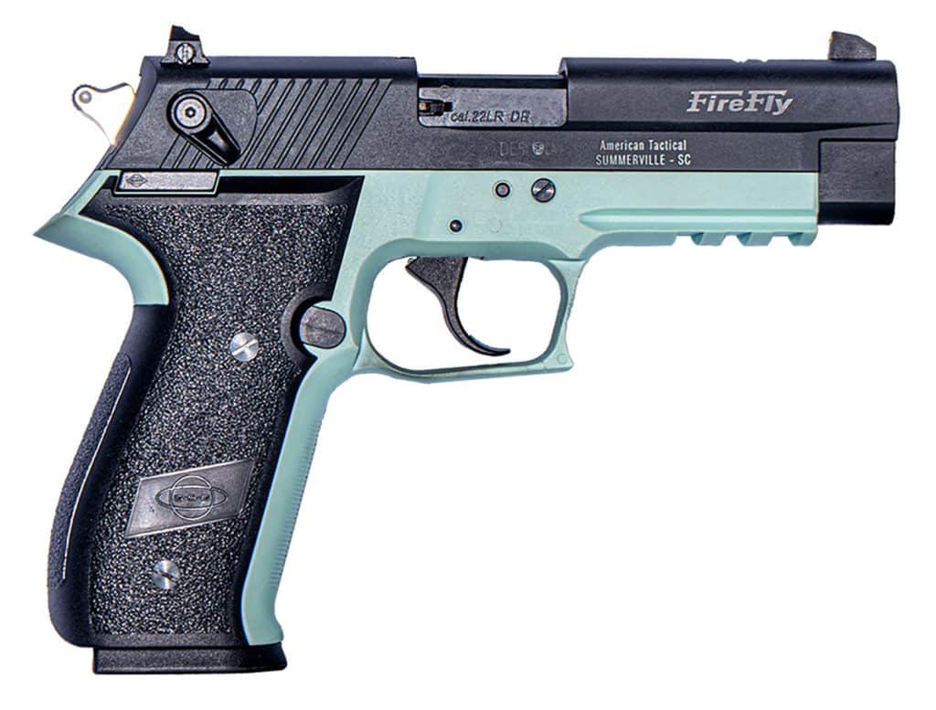 The GSG FireFly features a wear-resistant alloy frame outfitted with an integrated accessory rail. The slide has an adjustable rear sight and along with the rugged blowback system, fixed barrel and superior ergonomic grip. Features an internal locking device and slide-mounted ambidextrous safety.