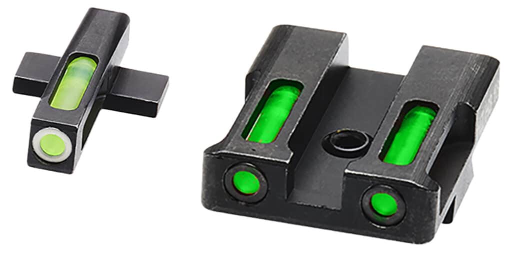 The LiteWave H3 sight combines Tritium with the HIVIZ Litepipe technology for 24 hour illumination. Now you can have the advantage of day and night performance all in one sight system. All steel construction sight sets are rugged and durable, designed for the roughest use, whether it is personal defense and protection, Law Enforcement or Military. This LiteWave H3 sight set has a green tritium front sight and green fiber optic rear sight. Factory height sight set. Does not fit XD 5.25. Front Sight Length: 0.780″. Front Sight Width: 0.470″. Front Sight Height: 0.225″. Rear Sight Length: 0.780″. Rear Sight Width: 0.660″. Rear Sight Height: 0.264″.