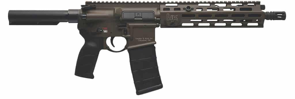 HK 81001201 MR556 A4 5.56x45mm 30+1 11″ Black Threaded Barrel, M-LOK Handguard, Patriot Brown Picatinny Rail Receiver, Black Synthetic Pistol Tube, Black Polymer Grip, Ambidextrous
