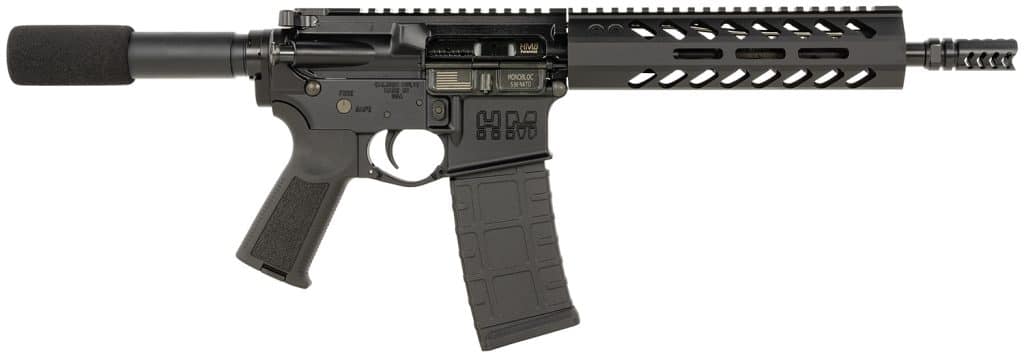 The RaiderMC 556 SBR pistol features a threaded, match grade Monobloc barrel with an integrally machined gas block; 8.50″ free floating Picatinny rail; forged aluminum upper and lower receivers; M16 bolt carrier group including charging handle and buffer tube/spring; custom trigger guard; Monobloc ejection port cover; custom QD end plate’ and HD Defense adjustable Close Quarter (CBQ) stock and enhanced grip. Includes magazine.