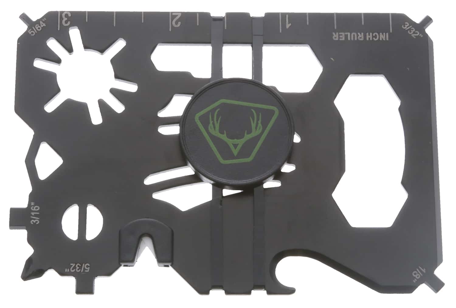 The HMW 20-In-1 Multi-Tool is specifically designed for bows and arrows. It features 6 Wrench sizes, 5 Allen wrench sizes, a 3 ruler, Nock wrench, Broadhead wrench, Philips Head screwdriver, Broadhead Blade sharpener can & bottle opener, box cutter, keychain attachment and a card/cash holder (rubberband).