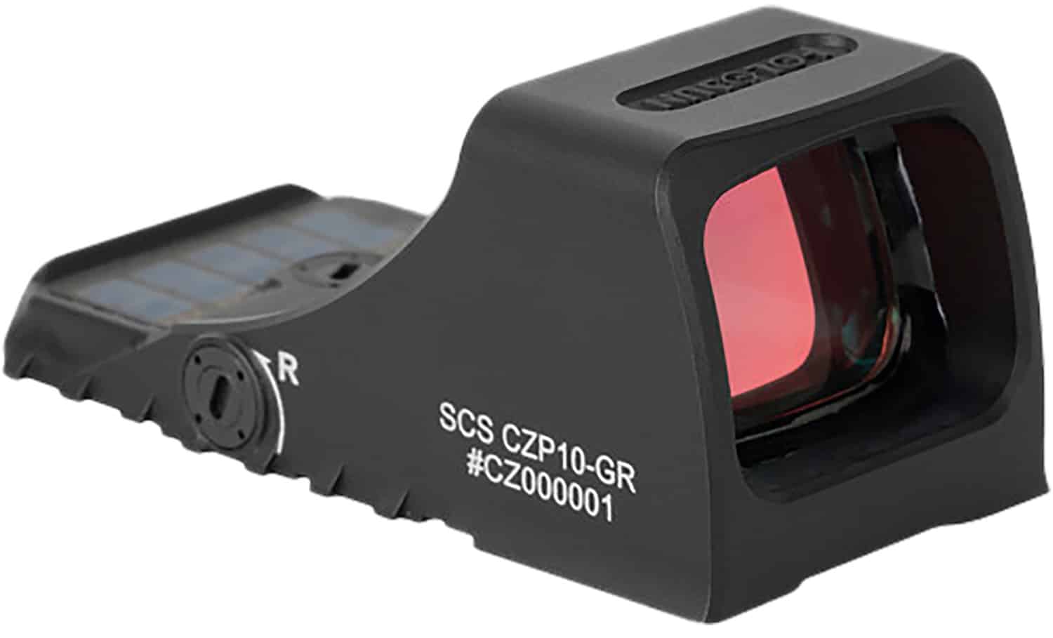 The SCS-P10-GR (Solar Charging Sight) is designed for the CZ P10 series pistol. It is designed to attach directly to the slide without an adapter plate and uses our innovative solar charging system with multi-directional light sensors to automatically adjust brightness in dynamic situations.The SCS can potentially operate indefinitely using an internal, rechargeable 20,000-hour power reserve meaning under even moderate exposure to bright light, you will never need to change batteries again. The SCS also includes an intensity override function which locks the optic into a high brightness mode for 30 minutes and a low power indicator which warns of low battery days before charging is needed. IP68 waterproof.