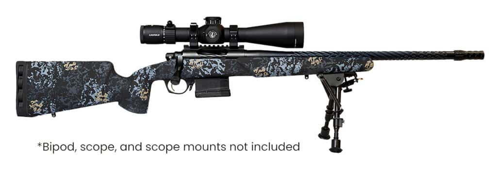 The Vandal Prime delivers a versatile long-range experience. Constructed with a texture-painted carbon iota EKO stock, it offers a sturdy foundation for precision shooting, whether on the range or in the field. Equipped with a TriggerTech trigger, a premium 416R stainless steel barrel featuring 3-flute, 2-twist banded spiral fluting and a Horizon Stiller action.