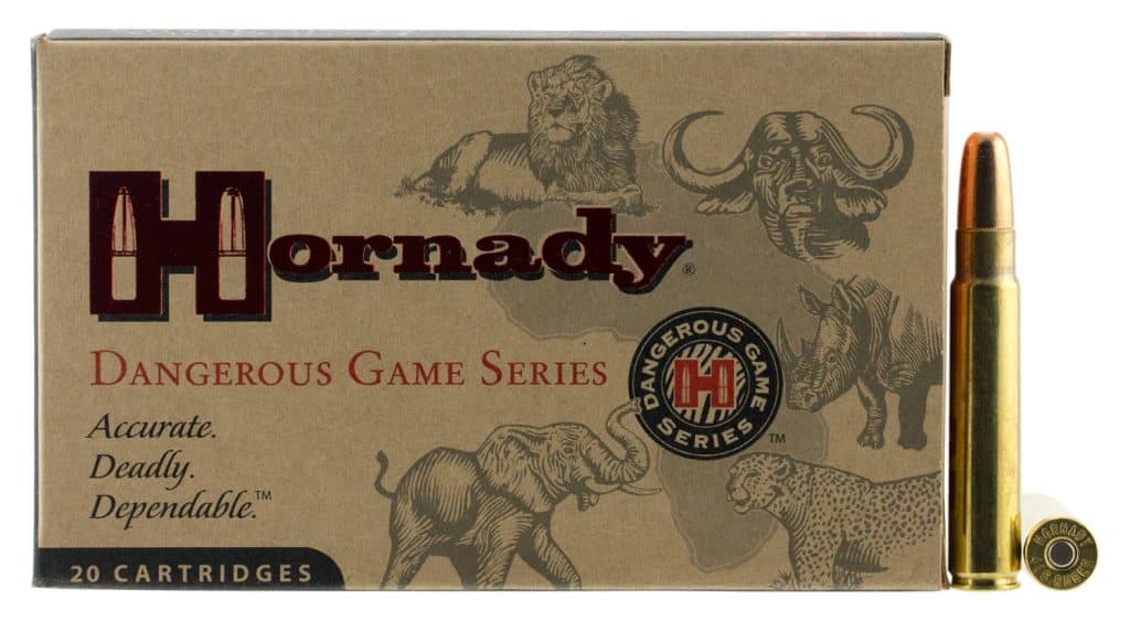Dangerous Game Series provides big, heavy bullets with high weight retention to tackle Africa’s Big Five or the biggest game wherever you hunt. Begin the ultimate one-two punch with the controlled expansion of the DGX Bonded bullet. Follow up with the deep penetration of DGS through thick hide, dense muscle, and hard bone. Powders are carefully matched to each load to ensure optimum pressure and velocity, and to regulate in double rifles. Dangerous Game is produced with strict quality controls for optimal performance on your destination hunt.