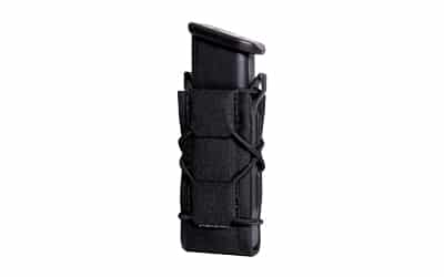 The Generation 2 Pistol TACO is sleeker, lighter, and more versatile than the original. Like the Original Pistol TACO, the Gen 2 Pistol TACO holds 1 pistol magazine, or similarly sized items. Contoured molded sides allow easy insertion of magazines. Integrated shock cord provides adjustable retention. Constructed from laser-cut nylon laminate wrapped over a woven thermoplastic core, Gen 2 TACOs weigh almost 20% less than the Originals. 1/2 inch interval MOLLE on the back of the TACO allows for both MOLLE and belt mounting options. With the addition of an HSG OTR Cover accessory, any Gen 2 TACO can be set up covered or open-top.