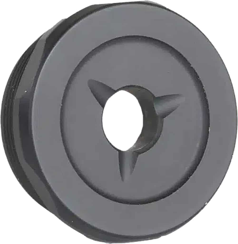 The shortest End Cap we offer, the Flash Reducer is the standard, flat End Cap for most JK Armament suppressors. Three small, concave channels provide good looks and some flash reduction.