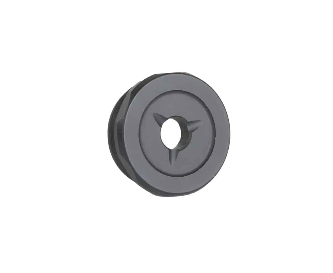 The shortest End Cap we offer, the Flash Reducer is the standard, flat End Cap for most JK Armament suppressors. Three small, concave channels provide good looks and some flash reduction.