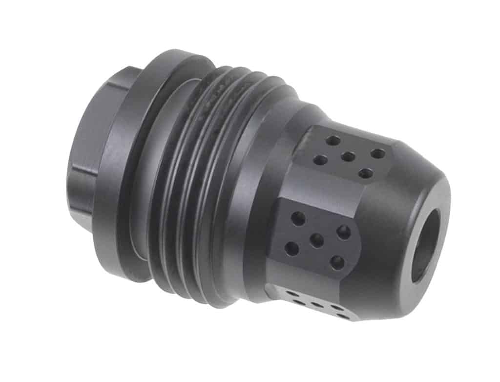 A compact, lightweight muzzle device, the JK HD Bald Eagle Compensator reduces recoil and provides a QD mounting point for your JK Quick Attach Taper Mount-equipped suppressor. *Recommended torque spec 35ft/lbs