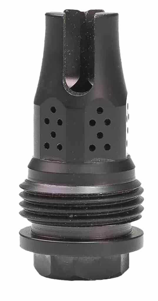 A true triple-use muzzle device, the JK HD War Eagle is a compensator, a flash hider, and a QA mount for JK suppressors! Thanks to its symmetrical design there’s no need to time the War Eagle, making installation fast and easy. *Recommended torque spec 35ft/lbs