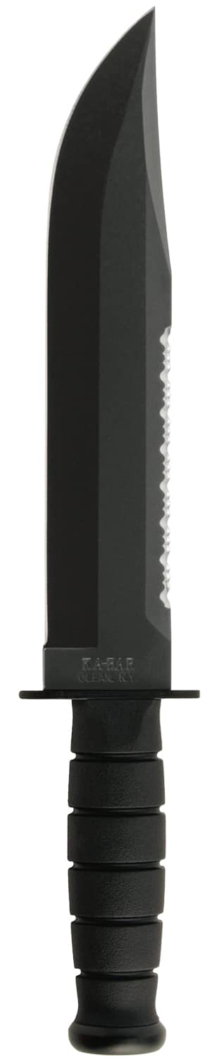 Ka-Bar 2211 Big Brother 9.38″ Fixed Top Serrated/Bottom Straight Plain Black 1095 Cro-Van Blade, Black Kraton G Handle, Includes Sheath