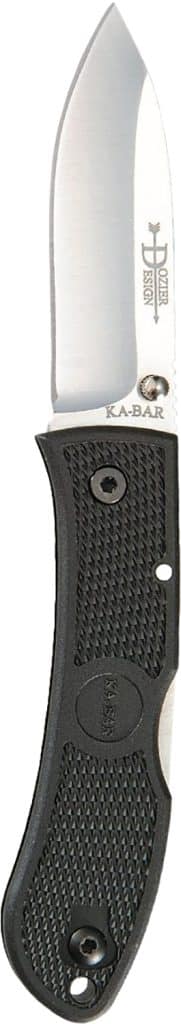 KA-BAR’s Dozier Folding Hunter is an award winning lockback designed by Bob Dozier. This practical all-purpose knife is appropriate for daily tasks. The 3″ drop point blade is hollow ground with a 15 degree edge and has a reversible thumb stud. It is made of AUS 8A stainless steel for a good balance of toughness, edge sharpness and corrosion resistance.