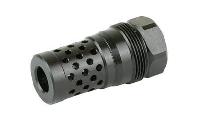 Plan B muzzle devices feature a taper followed by threads, resulting in repeatable lockup and a proper seal between the muzzle device and suppressor adapter. These Plan B muzzle devices are compatible with Plan B suppressor hubs. It is recommended to use Rocksett for installation and 20-25 ft-lbs of torque. Some suppressor manufacturers will not honor warranty claims if other brands of muzzle devices are used with their suppressors.