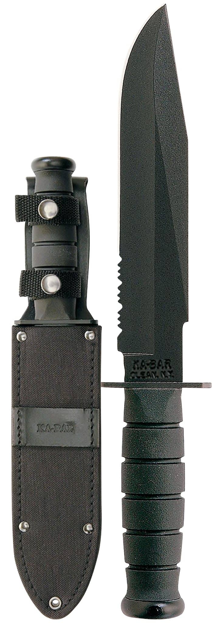 Ka-Bar 1271 Fighter 8″ Fixed Clip Point Part Serrated Black 1095 Cro-Van Blade, Black Kraton G Handle, Includes Sheath