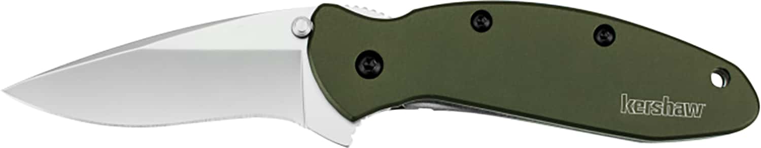 Kershaw 1620OL Scallion 2.40″ Folding Drop Point Plain Bead Blasted 420HC SS Blade Olive Drab Anodized Aluminum Handle Includes Pocket Clip