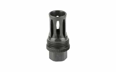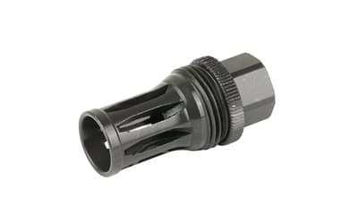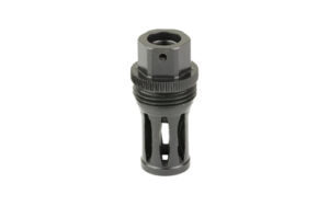 This Quick Detach (QD) flash hider muzzle device will allow a shooter to utilize any of the R556, R556A1, R556A2, R30A1, or R30A2 suppressors on weapons that have 1/2×28 muzzle threads. Featuring a birdcage-style flash hider, a taper mounting surface, and a ratcheting secondary retention system, this QD flash hider muzzle device will ensure precise and repeatable performance from your suppressor. Constructed of heat-treated Chromoly Steel with OXyN gas nitride finish.