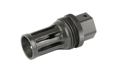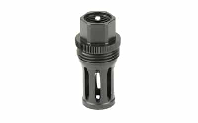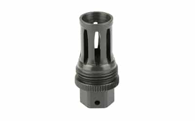 This Quick Detach (QD) flash hider muzzle device will allow a shooter to utilize any of the R556, R556A1, R556A2, R30A1, or R30A2 suppressors on weapons that have 5/8×24 muzzle threads. Featuring a birdcage-style flash hider, a taper mounting surface, and a ratcheting secondary retention system, this QD flash hider muzzle device will ensure precise and repeatable performance from your suppressor. Constructed of heat-treated Chromoly Steel with OXyN gas nitride finish.