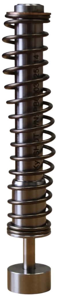 The KynSHOT Hydraulic Guide Rod is designed and optimized to be a drop-in replacement for all guide rod assemblies used for the Glock 19 slide or alike, without having to change the configuration of current firearm. The innovative design, uses a unique damping configuration to allow the slide to cycle properly, controlling the overall movement and speed of the slide. The KynSHOT guide rod can be used with all different ammunition scenarios. The PB6003 reduces the total recoil motion over 70%. The test data shows that when using the KynSHOT PB6003, the recovery time per shot is less than 0.5 seconds, whereas other guide rod systems recovery time show a 1.5+ second recovery time or more