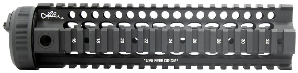 Excellent choice for short rifles in the 10″-16″ range. The 9.0’s length stops just past a carbine-length gas block, providing true free-float. The two-pin proprietary barrel nut system with its locking anti-slip plate, sets LaRue handguards apart from the competition. Once properly installed, there is no chance of movement. The side and bottom rails are tucked closer to the barrel, keeping the profile narrower and more streamlined. LaRue handguards also include integral QD sling-swivel sockets at the base of each side for convenient mounting 2-point slings. Additionally, the Free-float Rail system provides an excellent heat-sinking feature that pulls heat away from the chamber area.