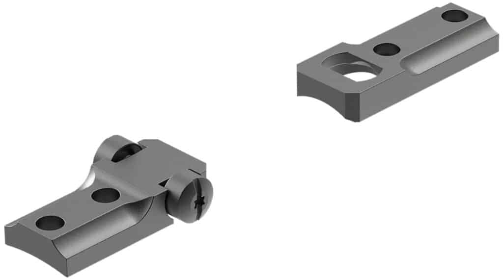 Leupold steel Standard (STD) rings and bases are the most versatile of any mounting system we offer. This specific model fits a Weatherby Mark V and is the perfect choice for standard calibers less than .300 Win. Mag. STD rings come in five different heights and are precision engineered to match up with STD 1-piece or 2-piece bases. The front dovetail ring pivots, allowing for lateral adjustment using the rear windage screws while bore sighting.