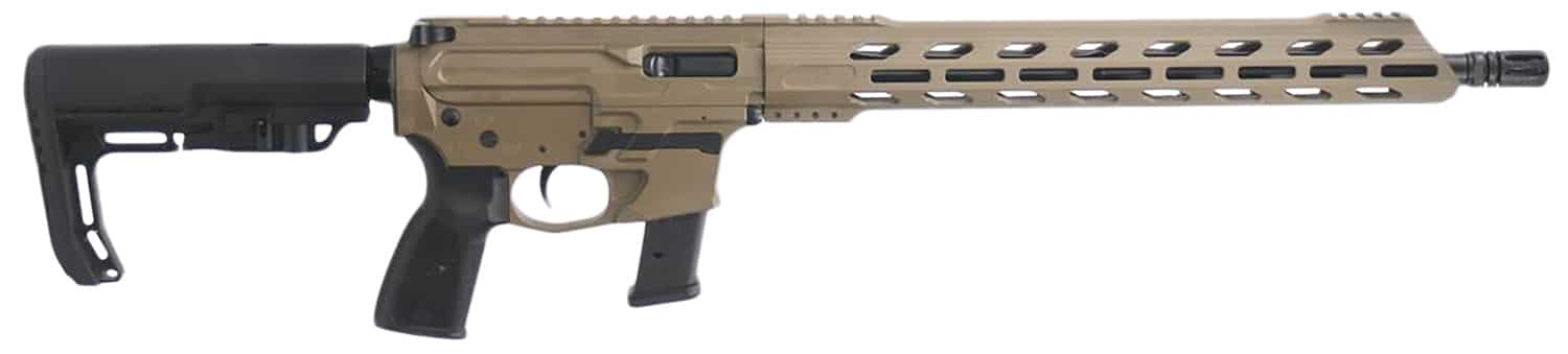 The Live Free Armory Challenger 9mm PCC operates on a straight blowback system and does not require a gas block and gas tube as traditionally found in other AR15s. The direct blowback system uses the kinetic energy generated from the discharge of the cartridge, to push the bolt back and cycle the action. The Challenger is compatible with standard frame Glock G17/G19 pattern magazines. The receivers are machined from 6061-T6 billet aluminum; free float handguard measures in at 15in M-lok compatible and free float handguard. Includes magazine & hard case.