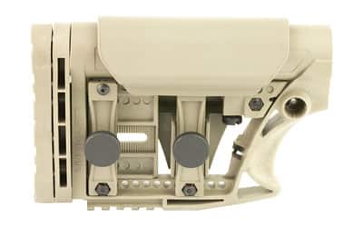 Luth-AR’s MBA-3 Fully Adjustable Carbine Stock Assembly Fits AR-15 & AR-10 Commercial and Mil-Spec Buffer Tubes. It has a 3-axis adjustable butt plate, a picatinny rail on the bottom rear of the stock body and an adjustable cheek piece. This fits all .223 and most .308 AR carbine style rifles. It is constructed of strong glass filled nylon and is easy to replace and quick to install.