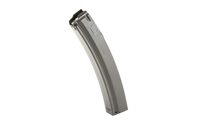 The HK SP5K 9mm 30-Round Magazine is designed for Heckler & Koch SP5K and MP5 models. Constructed from durable steel with a black finish, this magazine offers a high capacity of 30 rounds, making it ideal for extended shooting sessions. It is a reliable replacement part for your centerfire pistol, ensuring smooth operation and consistent performance.