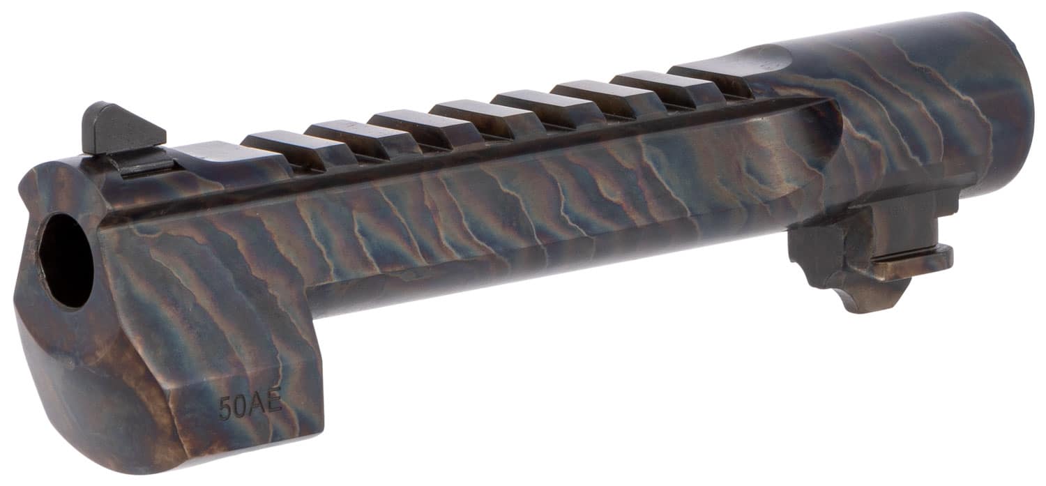 This Desert Eagle 6-inch Mark XIX barrel, features a case color hardened finish with 6 slots, Weaver rail in picatinny style rail. It is made in the USA.