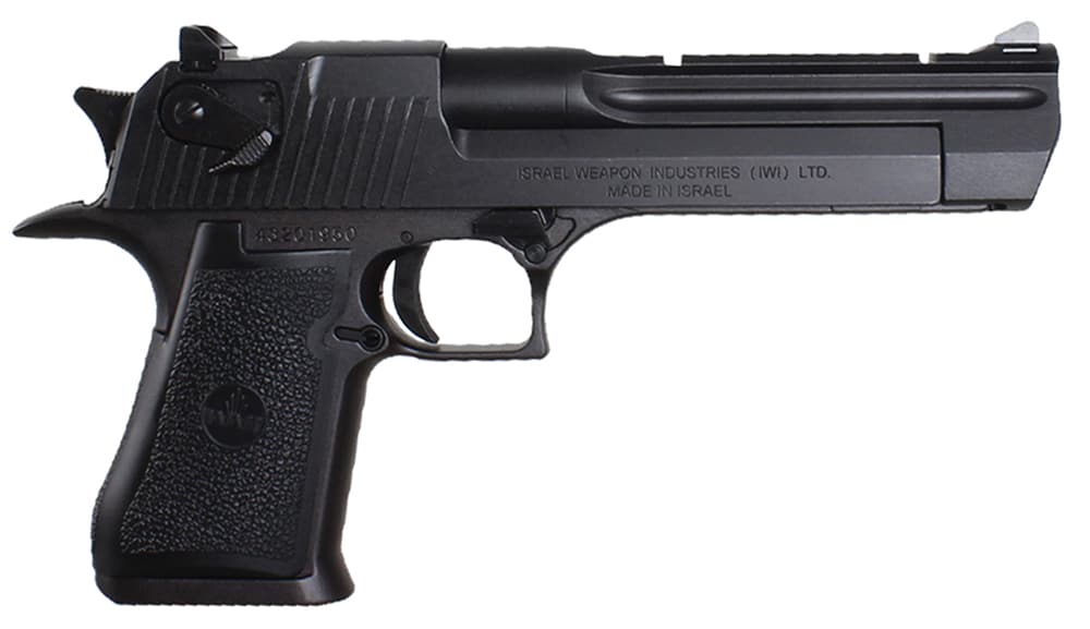 After 25 years of being accessorized, customized and re-imagined in countless movies, television shows and video games, the Desert Eagle Pistol has emerged as a pop-culture icon. It feature a full picatinny style accessory rail on the barrel from the end of the chamber to right behind the front sight and standard ambidextrous safeties. The Mark XIX Desert Eagle is a gas-operated, semi-automatic pistol with a trigger reach of 2.75″ and a sight radius of 8.5″. The construction of the Mark XIX Desert Eagle utilizes the latest CNC machine technology providing exacting specifications with tight tolerances creating a work of art in a precision firearm. The grip is anatomically formed and provides an ideal hand seating angle for two-handed shooting allowing for comfortable, rapid and accurate firing. The picatinny style accessory rail easily allows for aftermarket optics and scope rings.