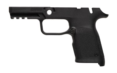 The Magpul EHG SG9 Compact grip frame for the SIG Sauer P320 functions with OEM P320 trigger modules, OEM 15-round magazines and magazine base plates, and small components and accessories. The EHG SG9 features an integral carry-sized magazine well flare and includes a Picatinny rail for lights or lasers. As an added bonus, the frame also comes with the Magpul-designed Magazine Release installed, which is reversible for left-handed shooters. This steel magazine release is finished in QPQ to resist corrosion and wear, and the release’s contoured surface features custom jimping to ensure positive engagement with the shooter’s finger when changing magazines.