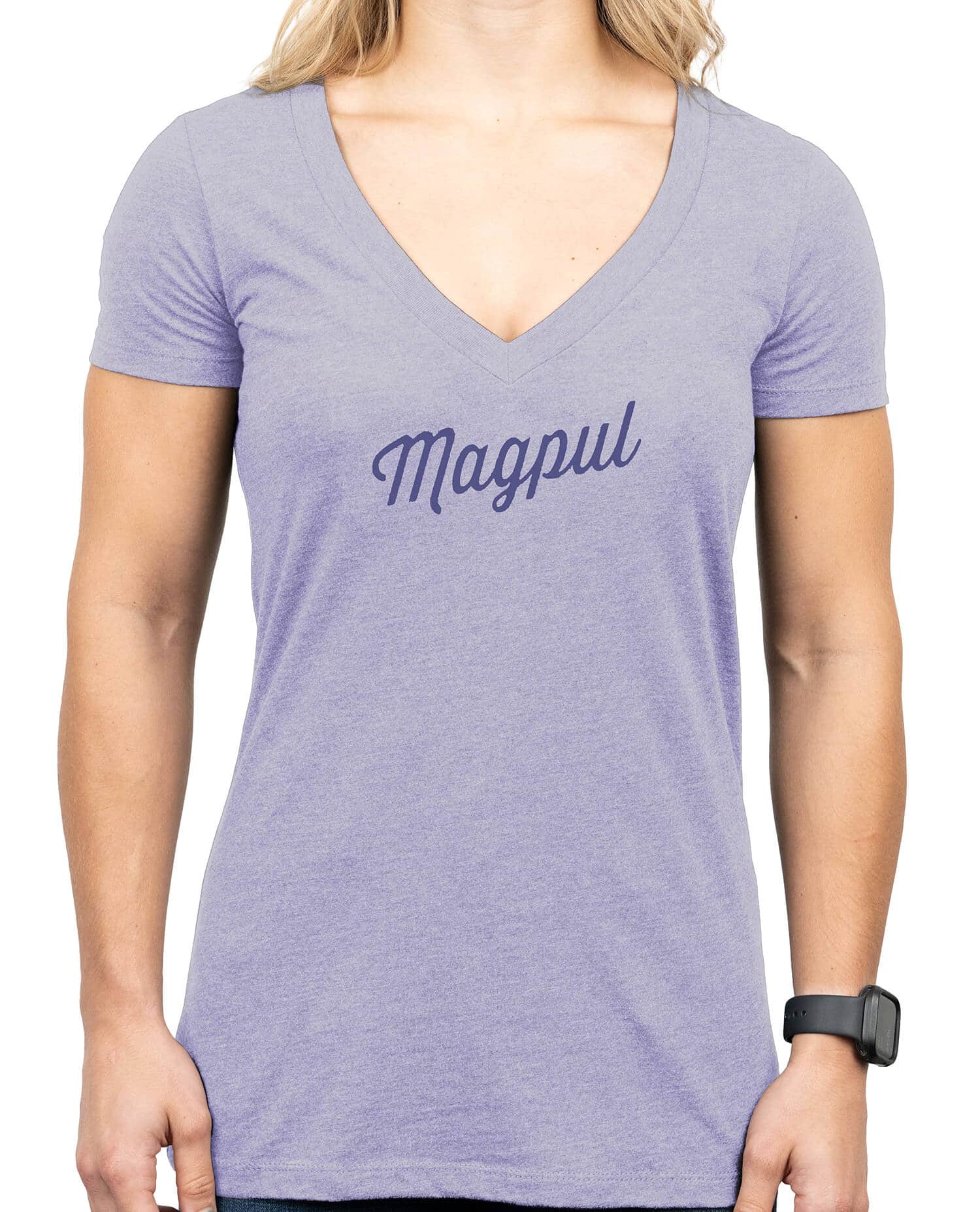 Magpul Rover Script Women’s T-shirt is made with 52% combed ring-spun cotton/48% polyester. Featuring a short sleeve, V-neck, tagless interior, shoulder to shoulder neck tape, double-needle stitching on hems and sleeves. Printed in the USA.