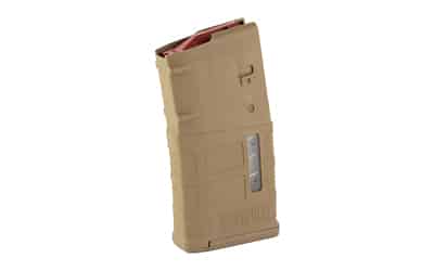 The PMAG 20 LR/SR GEN M3 Window is a lightweight, cost effective, highly reliable 20-round magazine for SR25/M110 pattern rifles chambered in 7.62×51 NATO (.308 Winchester). Constructed from next-generation impact and crush-resistant polymer, the new magazine features durable, dual-side transparent windows which allow for a quick count of the approximate number of rounds remaining in the magazine via a high visibility indicator coil on the spring and numerical markers on the magazine body. This proprietary capability, known as the MagLevel system, provides a fast round-count estimation without affecting the durability or reliability of the magazine. Like their other PMAGs, the 20 LR/SR GEN M3 Window magazine features a stainless-steel, corrosion-resistant spring and an anti-tilt, self-lubricating follower. The magazine’s lines follow a constant-curve internal geometry for continuous reliable feeding. The low-profile ribs and aggressive front and rear texturing help give shooters a positive grip for magazine changes in all environments. A paint pen dot matrix at the bottom panel of the body allows easy marking by the end user for identification purposes. Other standard features include a flared floorplate that aids extraction and handling of the magazine; this flared floorplate also improves drop protection and is slim enough to ensure better compatibility with tight double magazine pouches. The magazine is also simple to disassemble and makes for easy cleaning and maintenance when necessary. Designed specifically for SAAMI-spec ammunition, the PMAG 20 LR/SR GEN M3 Window is less than half the weight of standard issue steel magazines and maintains a service life round count approximately equal to the rifle barrel itself. Accessories designed for the 7.62X51 NATO line of PMAGs are also compatible with the PMAG 20 Window.
