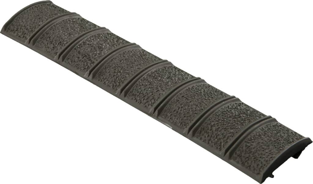 XT Rail Panels offer low-profile 1913 Picatinny rail coverage. The semi-rubbery material offers improved weapon control and rail protection. Easily cut for custom lengths, sections can mount next to each other to form a visually continuous cover.Each panel fits one side of a carbine-length rail. One panel per package.