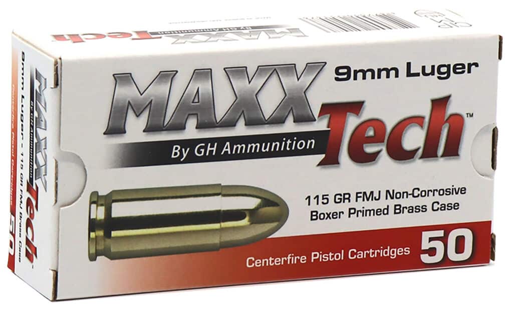 MaxxTech 9mm Luger handgun, 115 grain full metal jacket.