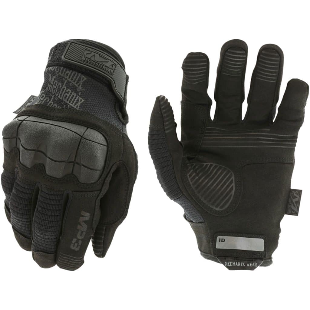 The M-Pact 3 Covert heavy-duty combat gloves has full-coverage hand protection. A dense one=piece thermoplastic rubber knuckle guard is anatomically designed to absorb forceful impact to the back of the hand and improve overall mobility during hard-charging operations. It features internal fingertip reinforcement for extreme abrasion resistance and embossed patterning for added grip where you need it most.