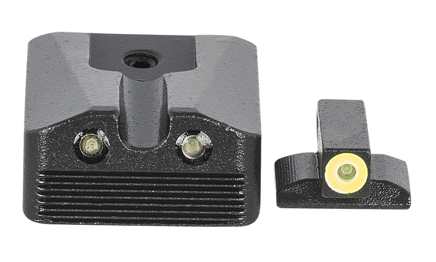 Meprolight Hyper-Bright fixed pistol sight features an extremely bright contrasting colored ring front sight. The tritium is illuminated green to provide low-light and nighttime aiming capabilities. The contrast in colors of the two components helps the shooter focus on the front sight quicker, which is critical in defensive and competitive shooting. Front Sight Length: 0.60″. Front Sight Width: 0.14″. Front Sight Height: 0.23″. Rear Sight Length: 0.92″. Rear Sight Width: 0.69″. Rear Sight Height: 0.42″.