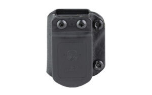 The perfect complement to their holsters with a slim, low profile appearance and position. Handcrafted yet designed using the same laser and CAD precision to the firearms magazine. All magazine pouches incorporate a flared opening for smooth transition from seamless deployment and return. A full range of retention lets the shooter secure the magazine to the level of their needs. Pouches include 1.5 inch belt loops as standard. One-inch accessory holes provide an ability to easily convert to a variety of other attachment hardware.